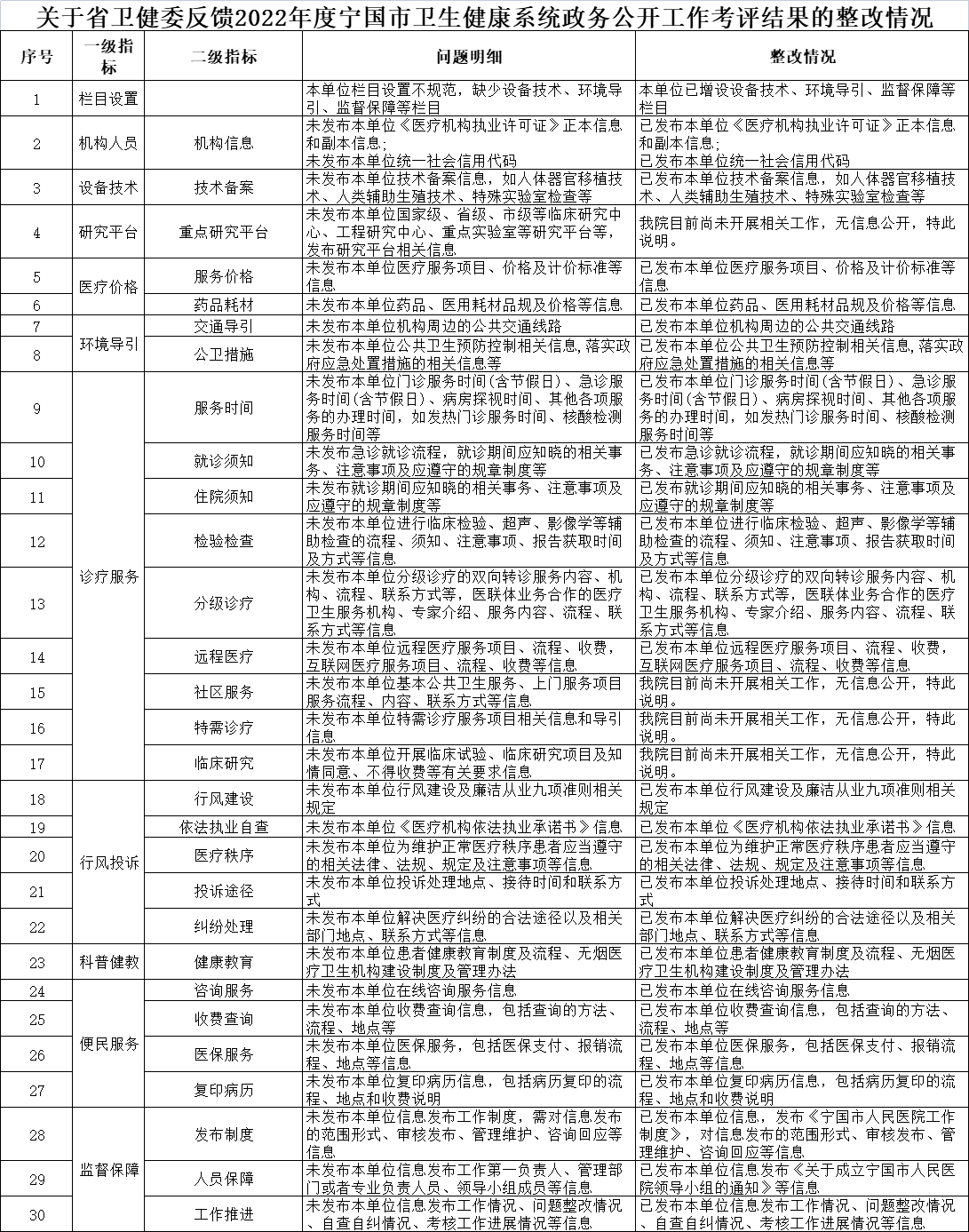 監(jiān)督保障【工作推進】關于省衛(wèi)健委反饋2022年度寧國市衛(wèi)生健康系統(tǒng)政務公開工作考評結果的整改情況